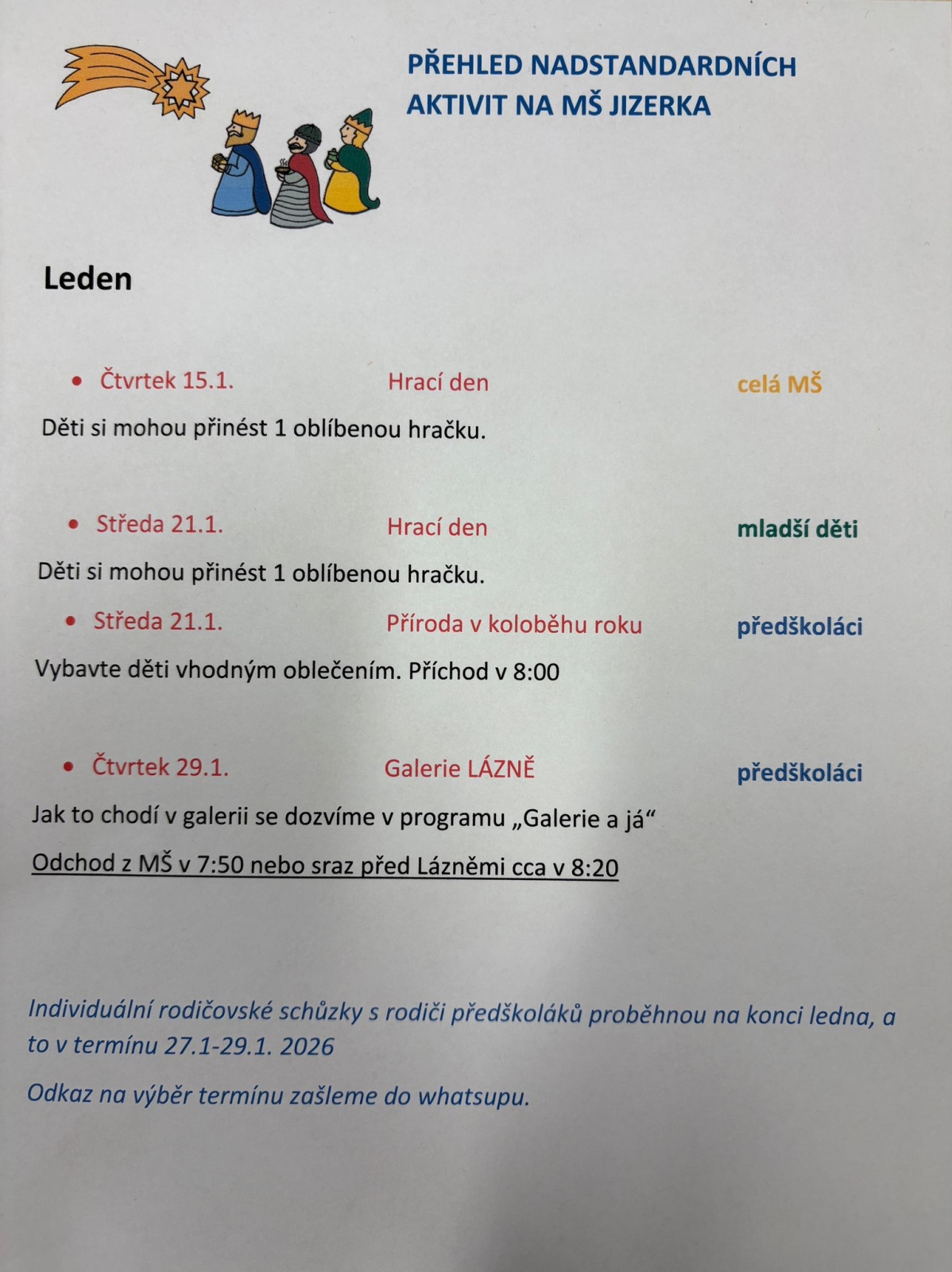 PŘEHLED NADSTANDARDNÍCH AKTIVIT NA MŠ JIZERKA Leden